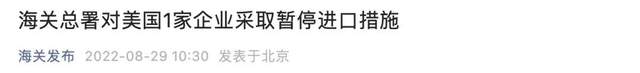 海关总署对美国一家企业采取暂停进口措施。