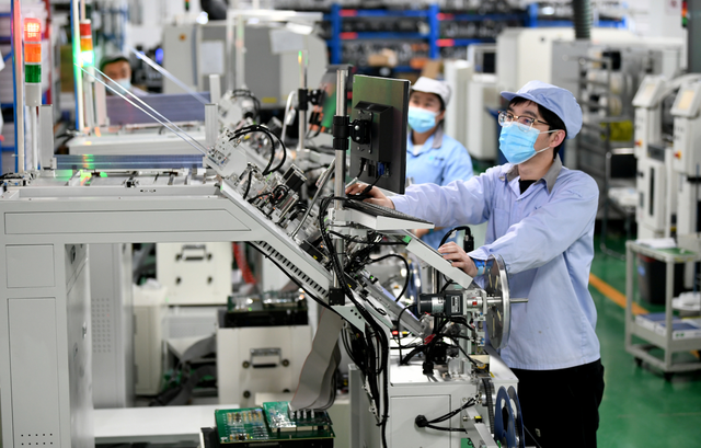 位于涿鹿经济开发区的青鸟消防股份有限公司,工人在模块检测生产线上工作。梁涛 摄