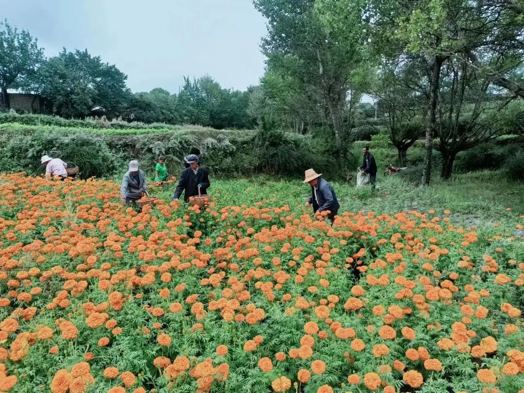 临洮县新添镇咀头村的万寿菊喜获丰收