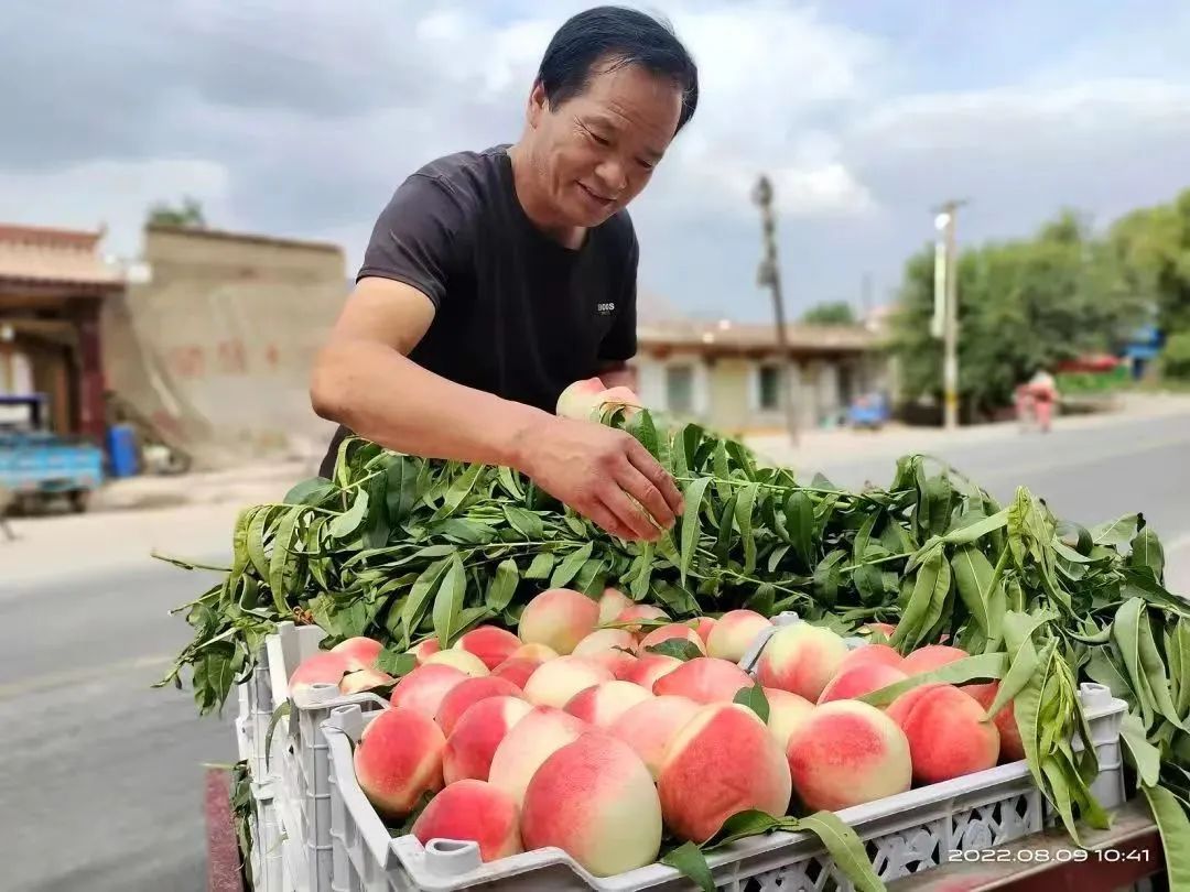 临洮县太石镇上咀村村民售卖自家种植的桃子
