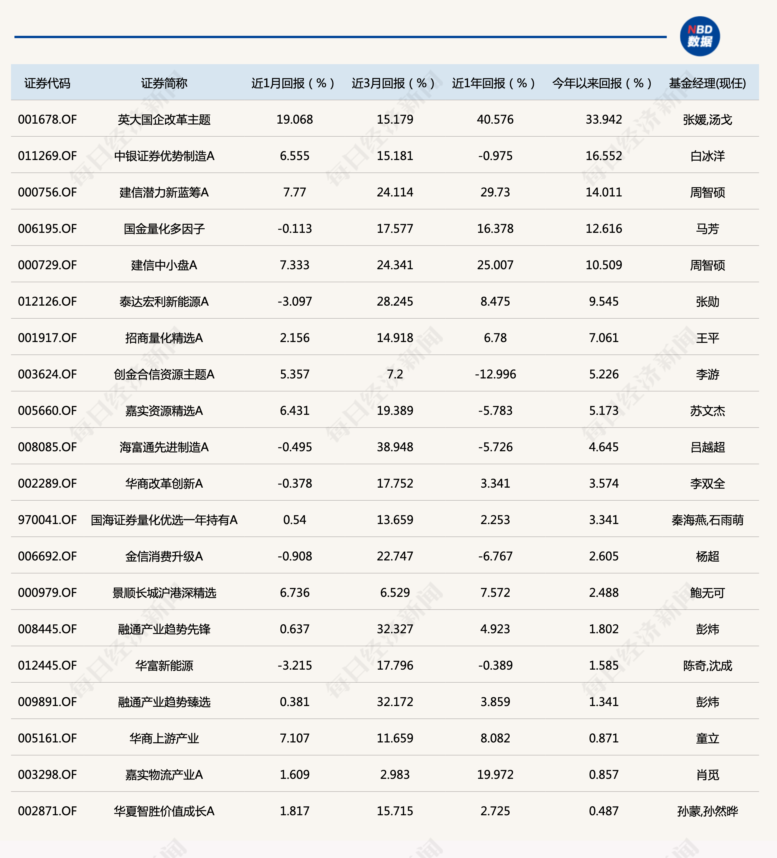 截至8月29日,股基冠军依然为英大国企改革,其年内收益从7月末的15.36%,提升到了33.94%,这也是目前唯一年内收益超过30%的股票型基金(指数基金除外);排名第二的是中银证券优势制造,该产品上个月末的年内收益仅9.8%,这个月逆势提升到了16.55,不过去与榜首产品仍存在一定差距。