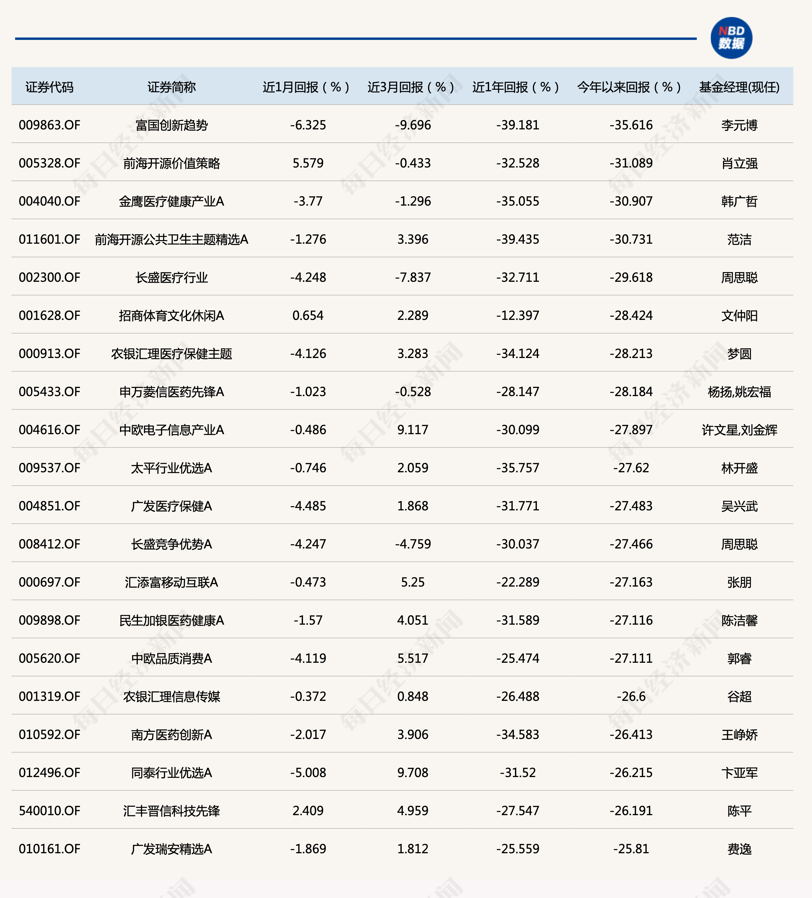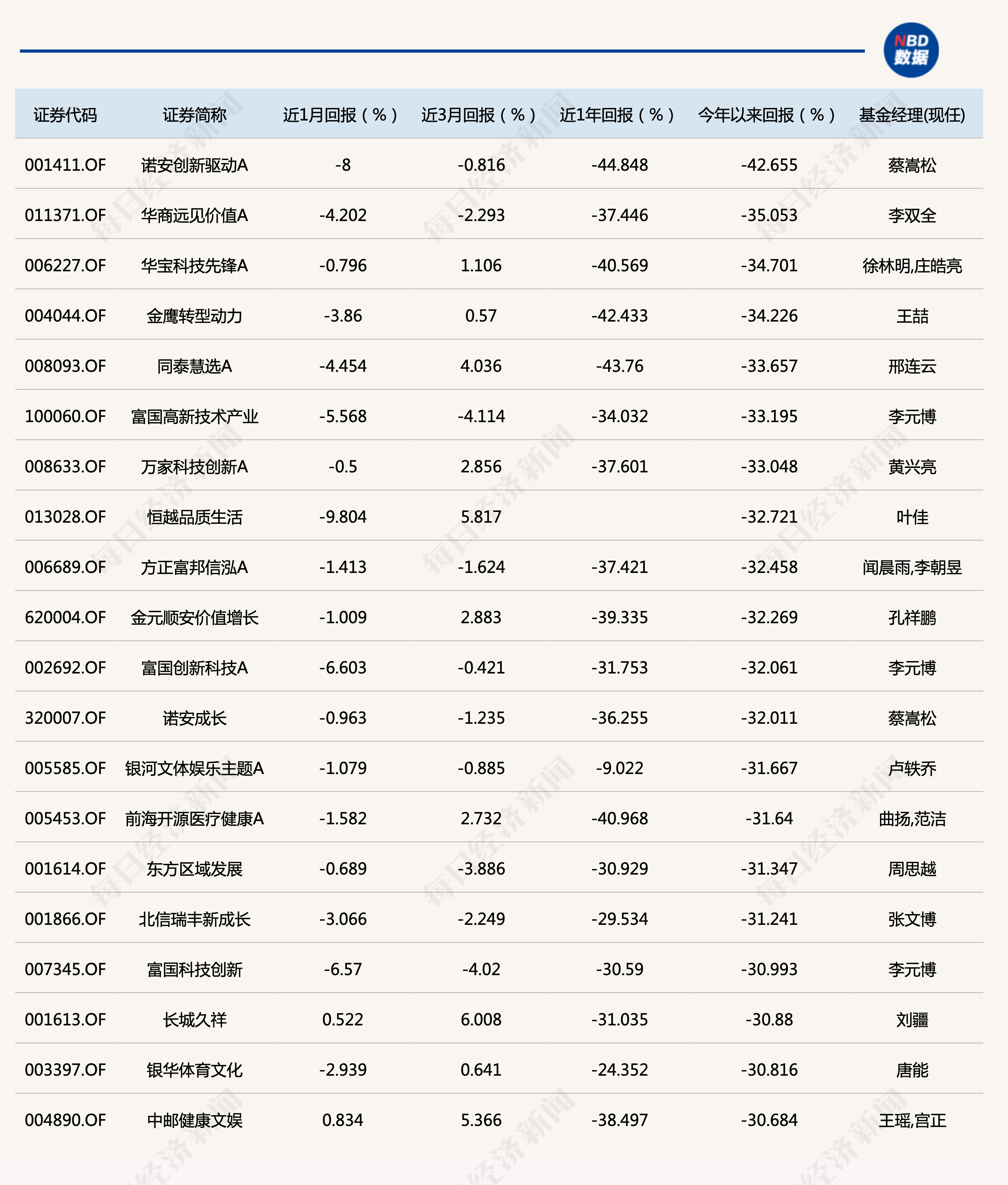 此外,蔡嵩松管理的另一只产品诺安成长年内亏损32%,排名“弱基”TOP20榜的第11。