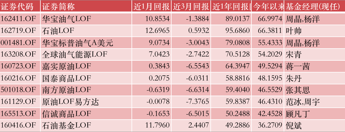 再看QDII产品的“牛基”TOP10榜,整个8月以来,油气类QDII净值大幅上涨,排名榜首的华宝油气月涨幅超过10%,今年以来累计收益接近67%;排名第二的石油LOF年内收益也超过66%。从整个QDII“牛基”TOP10榜单看,今年都实现了较高的收益,排名第10的都有36%的收益。