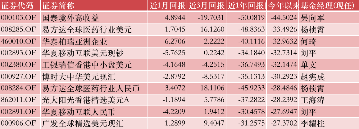 7月末,排名垫底的国泰境外高收益年内亏损超过47%,8月该产品净值略有回升,但依然亏损了44.5%,继续垫底。