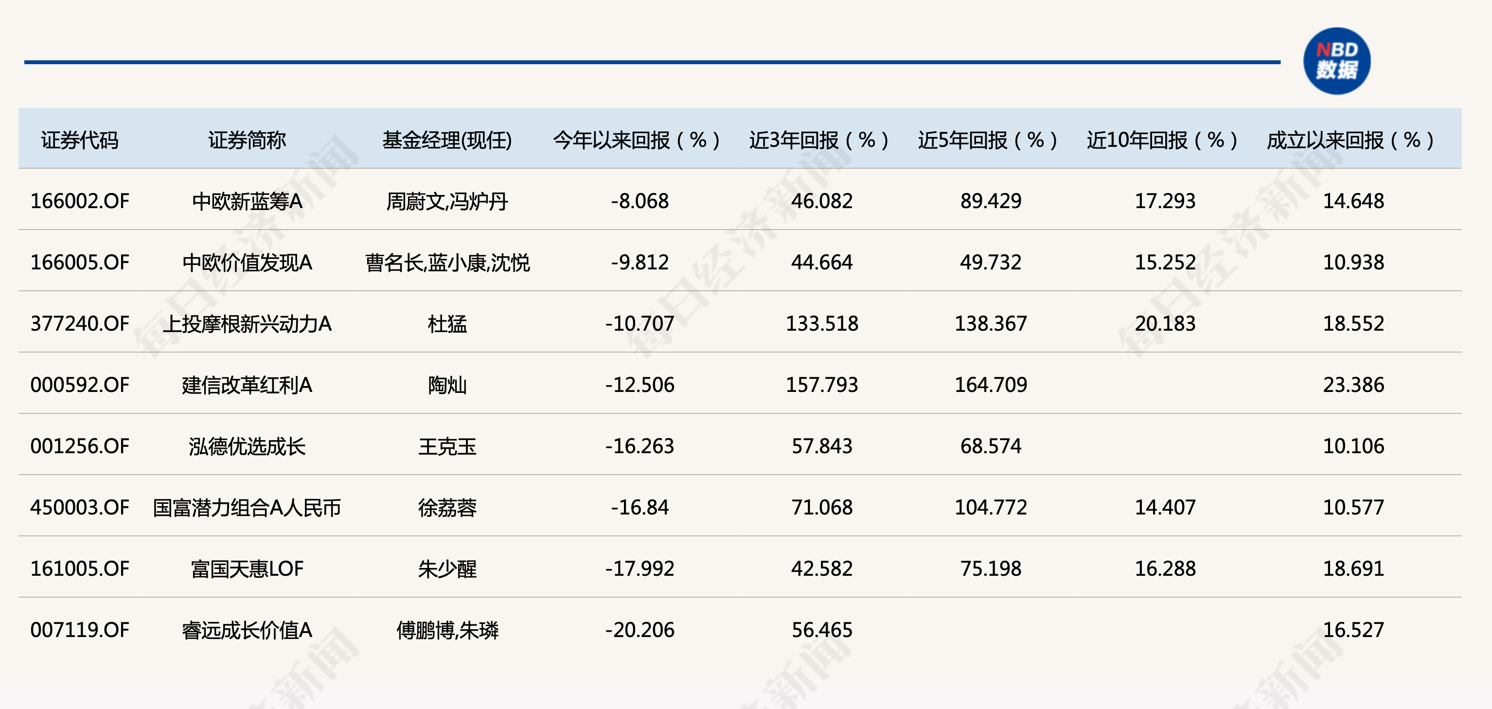 此外,排在混合型牛基TOP20榜单中的知名基金经理,还有中庚基金丘栋荣,他管理的中庚价值品质一年持有年内收益17%,目前排名第10;旗下另一只产品中庚价值领航,目前也取得了超过10%的收益,排名第20。此外,重仓猪肉、旅游酒店、航空等困境反转板块的财通基金两位基金经理金梓才和沈犁,他们的产品也继续维持在20强名单之中,收益超过10%。