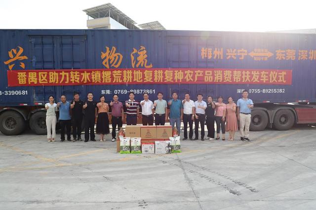 8月30日,广州市番禺区助力转水镇撂荒耕地复耕复种农产品消费帮扶发车仪式在梅州市五华县转水镇举行。转水镇党委书记彭云洪对番禺区驻转水镇帮镇扶村工作队后方对口帮扶的如番禺区市桥街、政协、公安分局等七个成员单位采购转水镇价值100余万元的农产品表示真诚感谢,希望工作队助推转水镇的农产品走向更大更广的市场,带动农民持续增收。