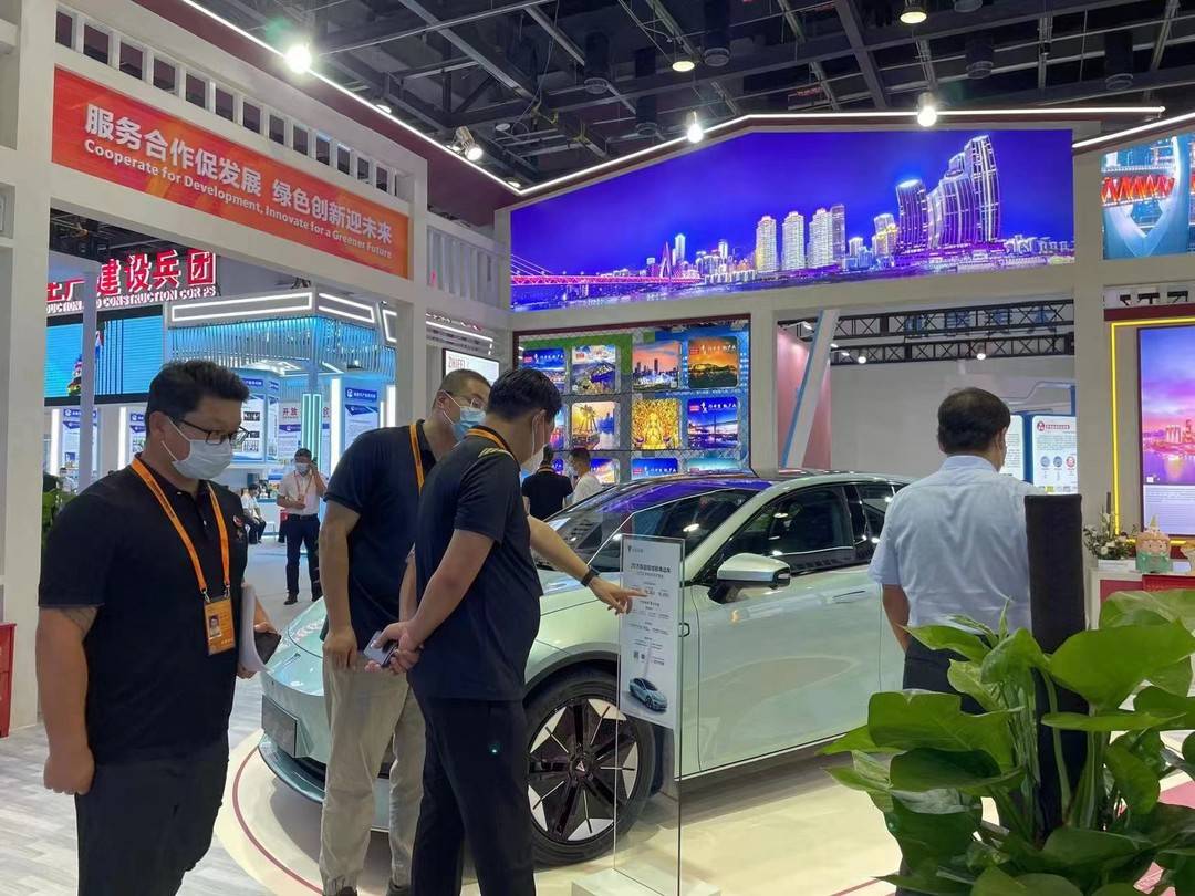 在重庆馆中,一辆长安深蓝SL03令人眼前一亮。 据长安汽车负责人介绍,此次为保障车辆顺利在服贸会亮相,重庆团经过1700公里跋涉运输高质量交付,这也是省区市展内为数不多的在现场展示新能源汽车。