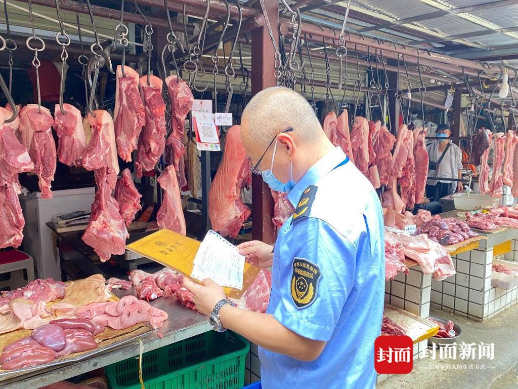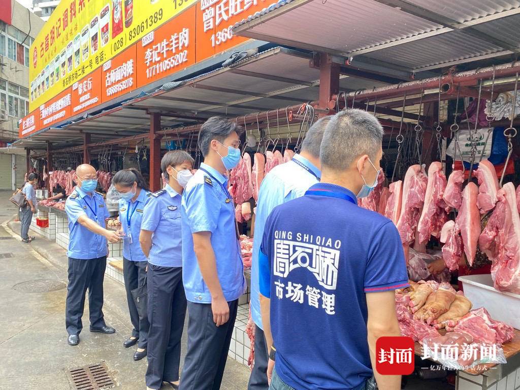 9月2日,锦江区市场监督管理局和区公安分局执法人员来到锦江区青石桥农贸市场,对蔬菜、粮、油、肉、蛋等生活必需品供应和价格情况进行专项检查。