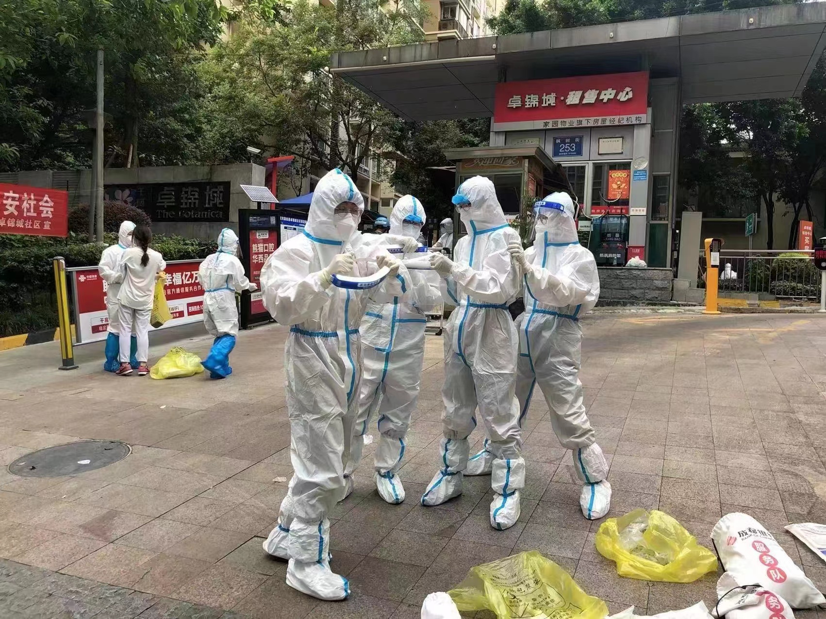 9月2日,成都银行驻点支援锦江区志愿者队伍96名志愿者分为6个小组,继续对口支援成龙路街道下辖卓锦城、国槐、蓝谷地、枫树、粮丰和香樟6个社区疫情防控工作。成都银行保供团队和留守岗位员工全力以赴确保基础金融服务不中断,为成都市各区疫情防控提供有力支持。