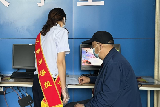 永昌路办税服务厅工作人员辅导纳税人填写申报表