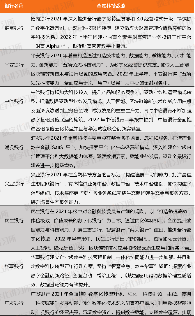 (二)股份制银行金融科技战略:各家银行各有侧重