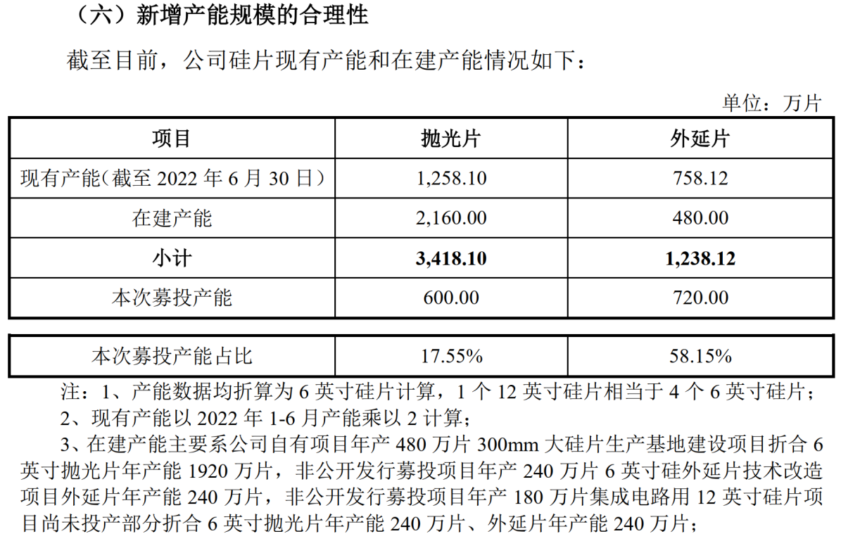 “本次募投项目新增硅抛光片产能占现有及在建硅抛光片的产能为17.55%,新增硅外延片产能占现有及在建硅外延片的产能为58.15%,本次募投项目新增产能规模较为合理。”立昂微表示。
