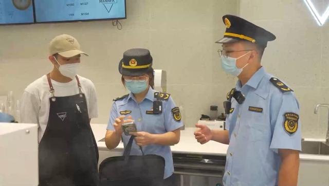 “您好,我们是杨浦区市场监督管理局的工作人员,现在要对门店的食品安全进行监督检查”。杨浦区市场监督管理局工作人员向店长出示了执法证件并表明来意后,开始了正式检查。