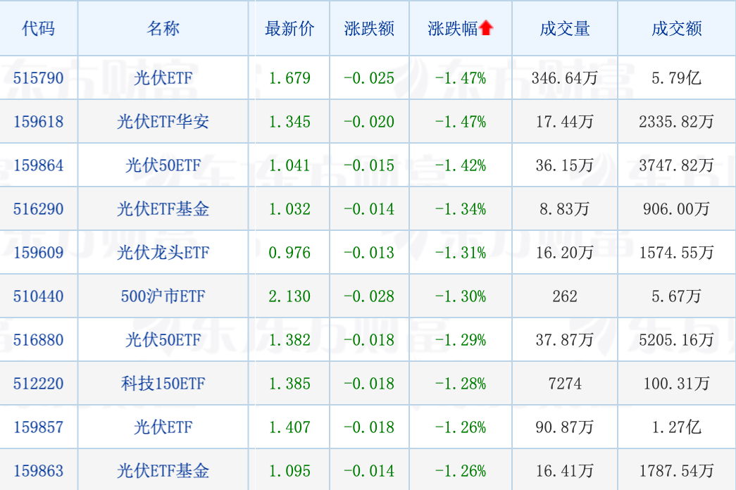 下跌方面,TOPCON电池、储能、Chiplet、核电等板块跌幅居前,受此影响,光伏ETF全线下跌。