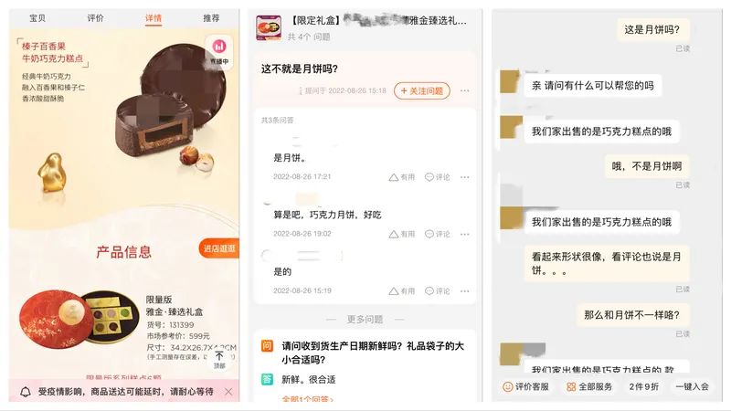 某巧克力品牌客服表示,自家产品是糕点不是月饼;产品页面显示,一枚圆形的“巧克力糕点”定价超过百元