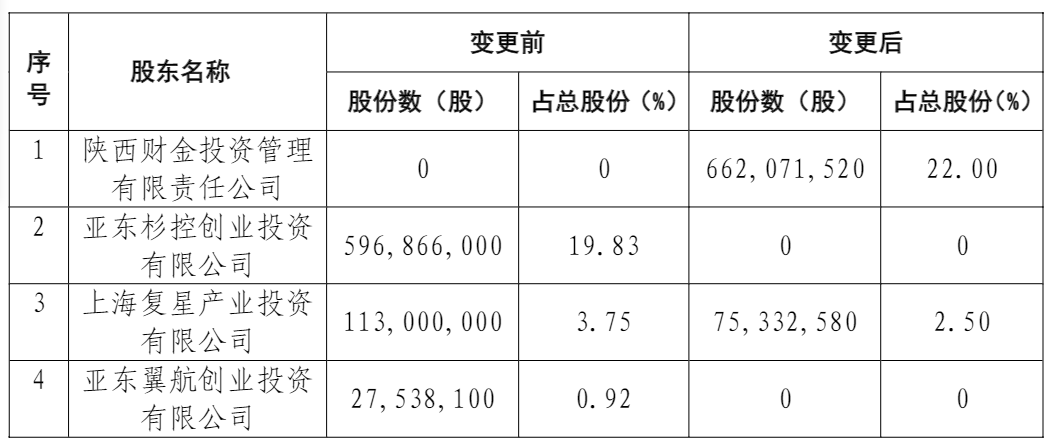 根据永安保险披露的股权转让信息来看,亚东杉控创业投资有限公司、上海复星产业投资有限公司、亚东翼航创业投资有限公司分别将持有的19.83%、1.25%、0.92%的股权转让给陕财投,上海复星产业投资有限公司和上海复星工业技术发展有限公司分别将持有的2.5%和1.4932%股权转让给陕西增信。作为新进股东,转让完成后,陕财投和陕西增信的持股比例分别为22%和4%。