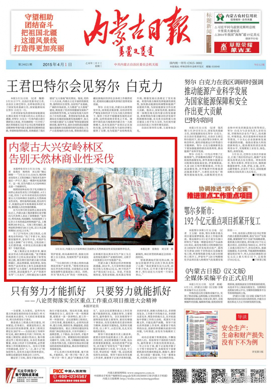 时光倒回至2015年3月31日11点06分,伴随着伐木工人王铁昌高亢有力的伐木号子,一棵兴安落叶松轰然倒地。2015年4月1日起,有着63年木材采伐历史的内蒙古大兴安岭林区全面停止天然林商业性采伐。2015年4月1日,《内蒙古日报》曾在头版对此进行报道。