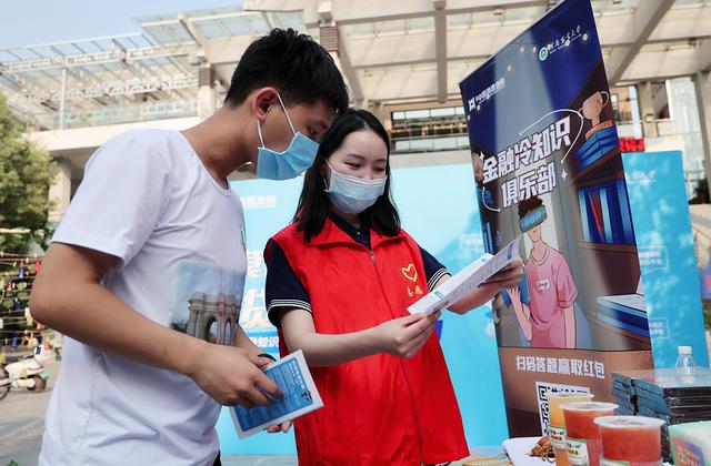 9月13日上午11点半,在河南农大龙子湖校区第一食堂门前,校园科普打卡台前已经有不少充满好奇心的学生们在排队。从“反诈奶茶”到“反诈湿巾”、从金融知识小扇子到线上答题小游戏、从干货满满的宣传单页到非常特色的易拉宝,无论是“游戏爱好者”还是“打卡专业户”,都能在感受沉浸式体验的同时,收获无处不在的金融反诈知识。
