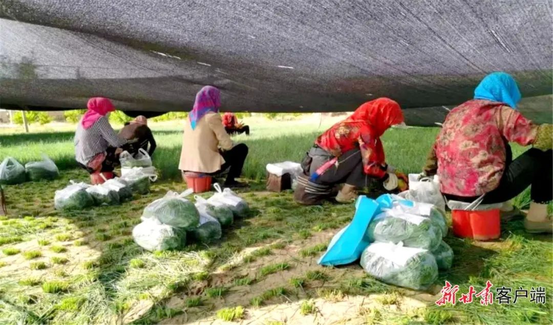 沙葱产业不仅为当地群众开辟了一条增收致富新途径,也打开了村民们家门口就近务工的增收门路。每到沙葱采收的日子,附近村民纷纷加入沙葱“采收队”,利用农闲时间增加收入,真正实现了种植、务工两不误。