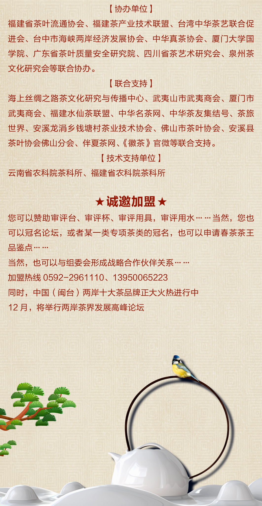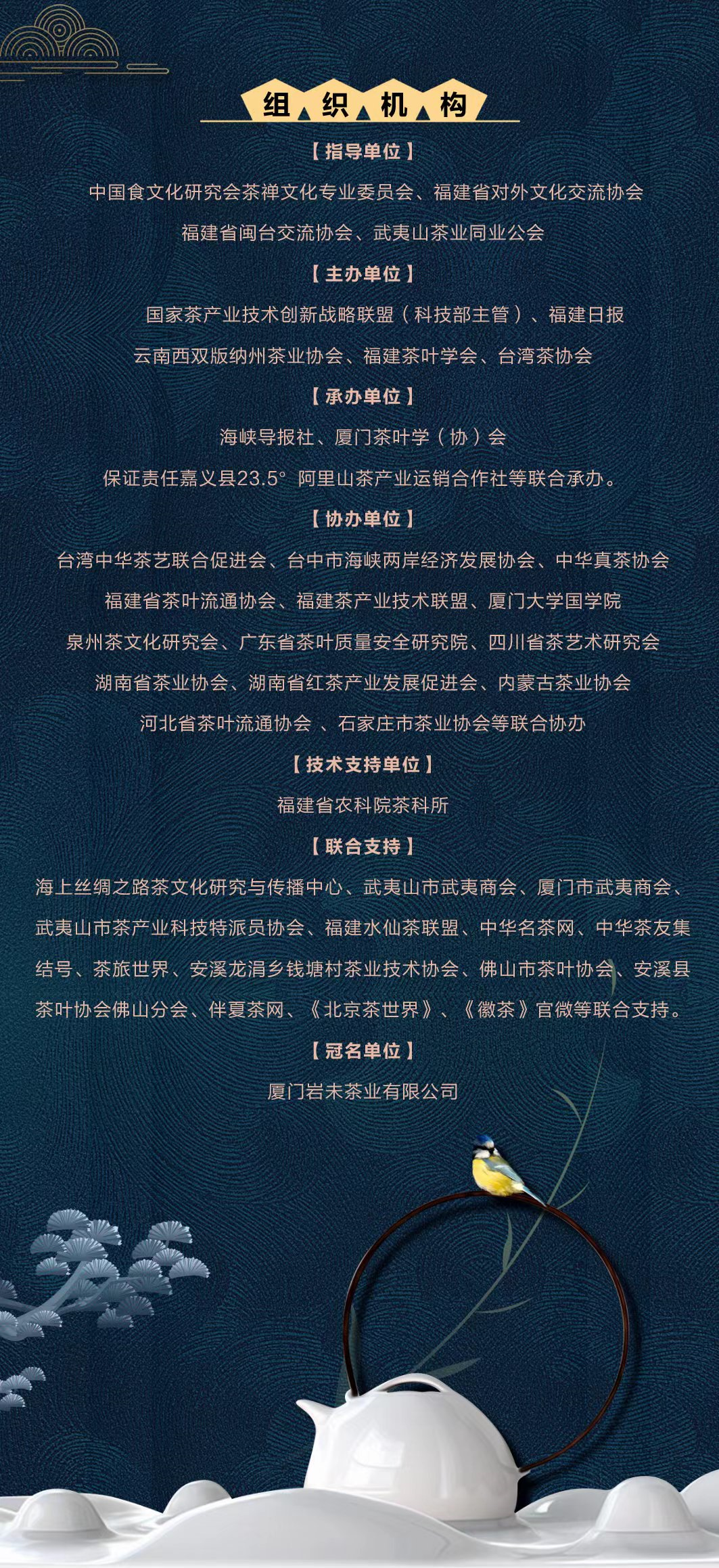 海上丝绸之路茶文化研究与传播中心、武夷山市武夷商会、厦门市武夷商会、福建水仙茶联盟、中华名茶网、中华茶友集结号、茶旅世界、安溪龙涓乡钱塘村茶业技术协会、佛山市茶叶协会、安溪县茶叶协会佛山分会、伴夏茶网、《北京茶世界》、《徽茶》官微等联合支持。