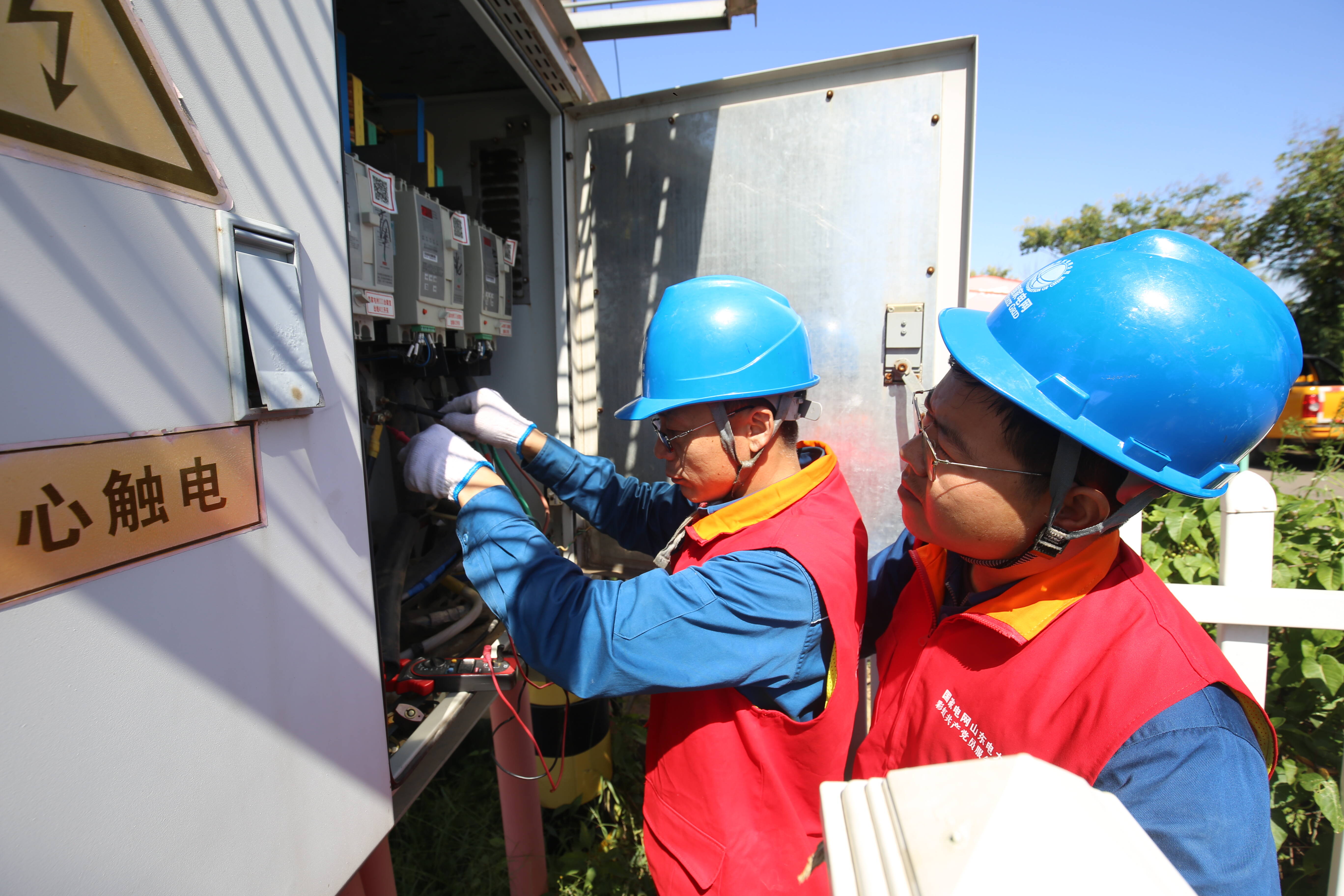 在李家屯村梨园的东南方向,从李家屯村I号机井通电台架往南150米处有一个电缆分接箱,该分接箱是千亩梨园的首个分接箱,承担的供电任务异常艰巨。刘学良和王光林用随身携带的万用表对分接箱配电设备的电流进行测量,只见他们对每一个接点及每一相出线都逐一检查并测量,详细记录测量的数据,之后再将其与前一日的数值进行比对。