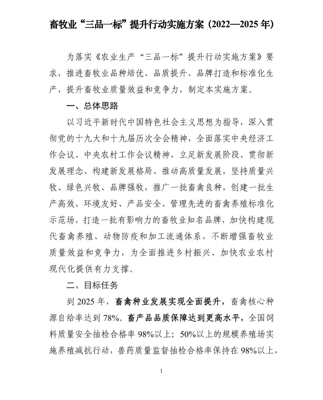 全文丨畜牧业“三品一标”提升行动实施方案(2022—2025年)