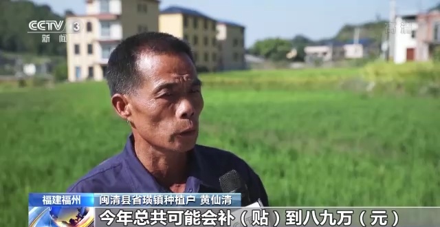 闽清县省璜镇种植户 黄仙清:我总共是300多亩地,像现在政策下来的话,今年总共可能会补贴到八九万元。