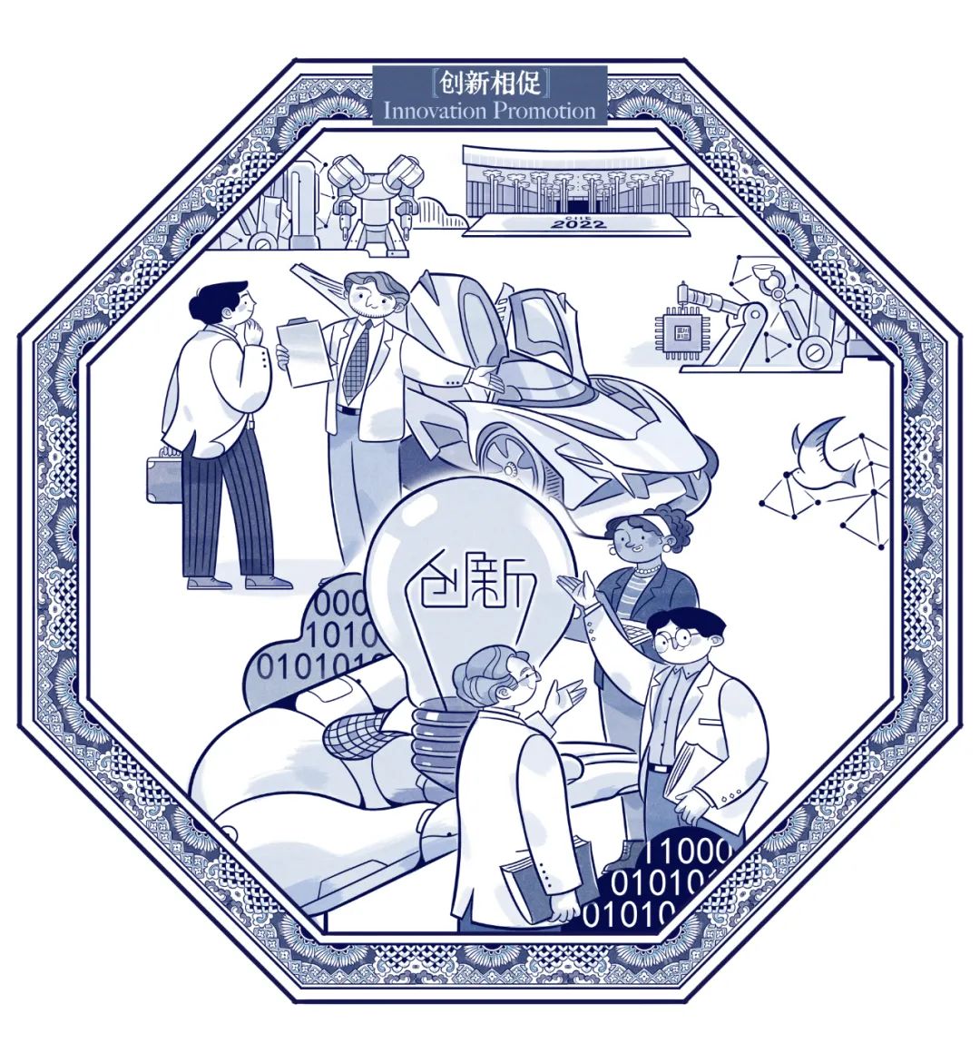 本期的进博插画以“创新相促”为主题,