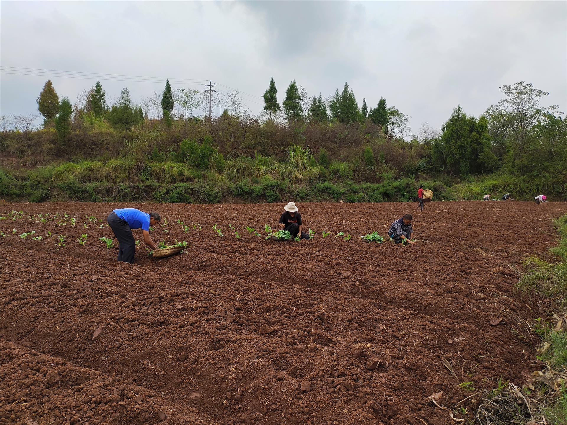 在潼南区龙形镇丁坝村集体经济种植基地,村民们正在移栽白菜苗,不多时,一棵棵翠绿的白菜苗经过村民们辛勤的劳作,变成了一行行承载着希望的“致富苗”。