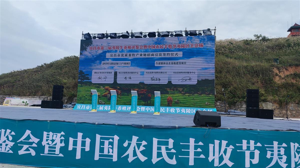 湖北日报讯(记者金凌云、通讯员岳黎、秦先寿)9月23日,宜昌市第二届夷陵牛养殖评鉴会暨夷陵区庆祝“中国农民丰收节”活动在夷陵区分乡镇百里荒景区举行,现场10家企业与养殖基地、合作社农户、销售商家签订了意向性投资协议,总签约投资额6.5亿元。