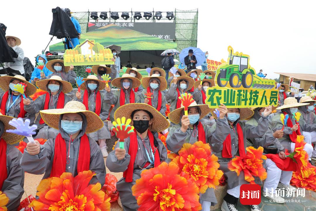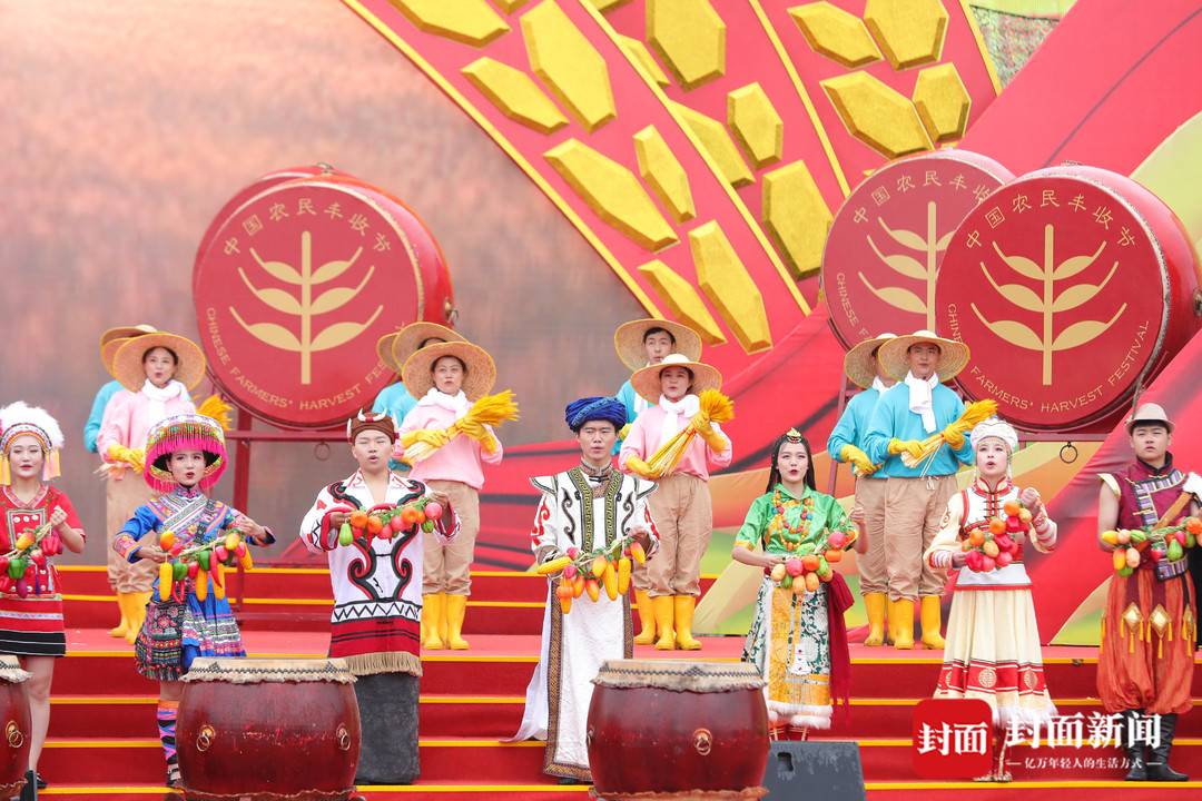上午,2022年中国农民丰收节“群众庆祝丰收联欢活动”在天府农博园星河农业公园举行。活动中,四川主会场与北京现场联动,相关领导出席北京群众庆祝丰收联欢活动现场,并视频连线四川主场活动。四川丰收节联欢活动主要分为“庆、升、典、藏、传”五个主题开展,其中包括2022年度“全国十佳农民奖”、2022年度农牧渔业丰收奖(贡献奖)颁奖仪式、升国旗和丰收旗仪式、与分会场连线以及农民文艺汇演等环节。