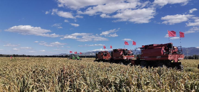 9月22日,多台收割机、拣拾机往返于此,一幅丰收的画卷正徐徐展开。