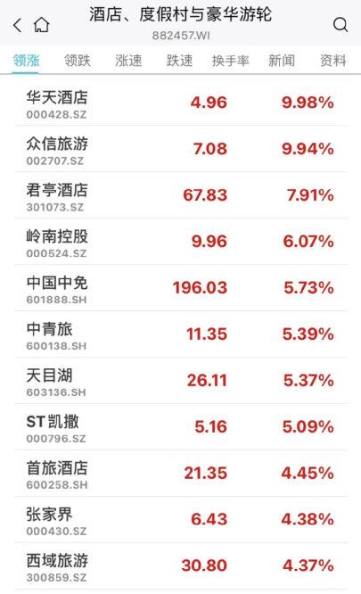 临近国庆假期,餐饮旅游、酒店航空、免税店等概念表现活跃,涨幅居前。华天酒店、众信旅游涨停,君亭酒店涨近8%,岭南控股、中青旅、春秋航空、白云机场等均不同程度上涨。