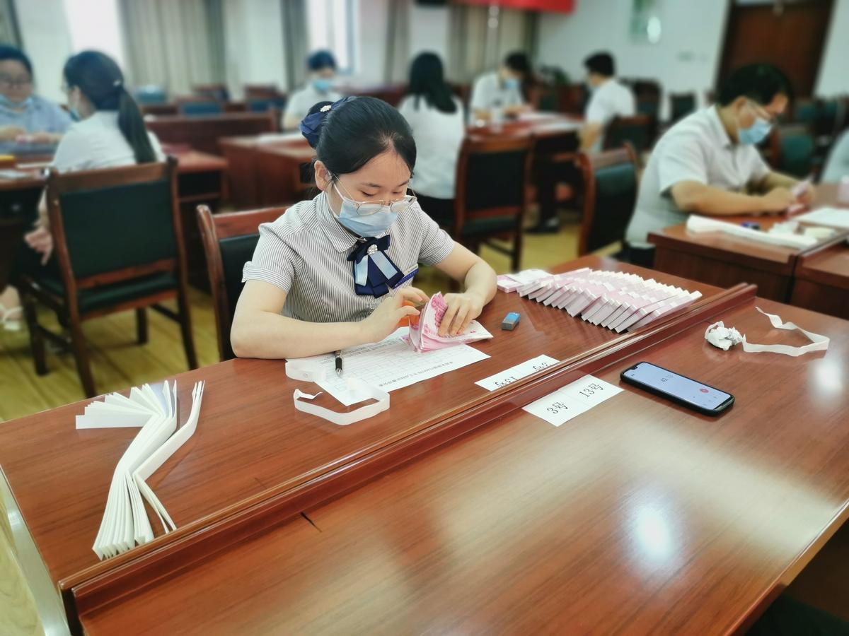 本次比赛共设置手工点钞、传票算两个项目。比赛现场,参赛选手们斗志昂扬、发挥出色,充分展现了一线临柜人员过硬的业务技能和奋勇争先的精神风貌。经过激烈角逐,最终各比赛项目的业务能手脱颖而出,由9名选手分别获得2个赛项的一、二、三等奖。(农村新报通讯员 张倩 摄)