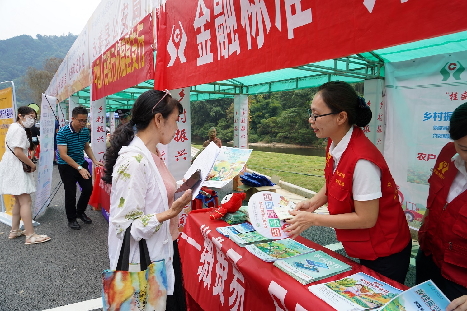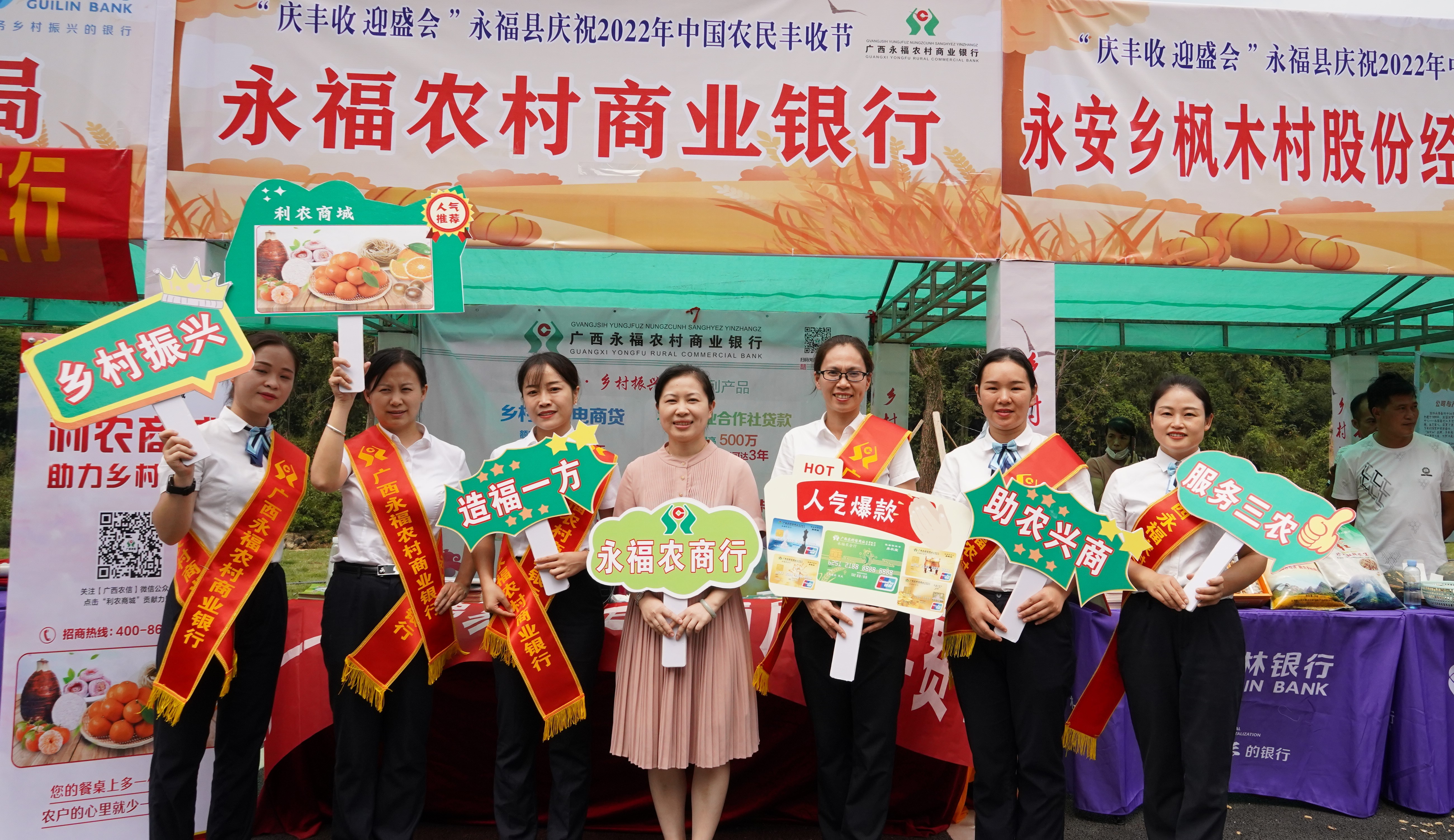“一年好景须君记,最是橙黄橘绿时”, 为营造全民共庆丰收、喜迎党的二十大胜利召开的良好氛围,感恩党的关怀,9月23日上午,由广西永福县委、县人民政府主办的永福县“庆丰收 迎盛会”庆祝2022年中国农民丰收节在永福县龙江乡举行。广西永福农商银行金融服务志愿者以丰收节为契机,在做好会场服务工作的同时,大力宣传本行特色金融产品,提高助农产品知晓率,提升助农、惠企政策的覆盖率。