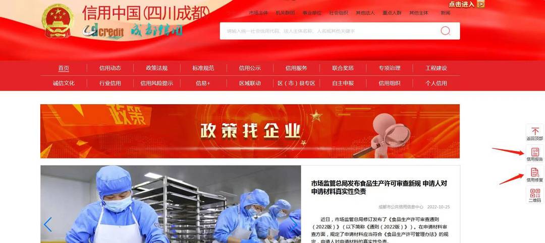 据悉,“信用中国(四川成都)”网站通过融合“蓉易享”平台功能已在全国率先实现集信用查询、政策匹配、信用报告、信用修复等“一站式”集成功能。目前,该网站的日均点击量达20万次,进一步提升“政策找企业”覆盖面和知晓率。