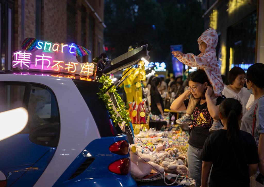 7月2日,游客在宁夏银川市建发大阅城特色夜市购物。当日,第三届“宁夏夜绽生活节”在宁夏银川市建发大阅城中街拉开帷幕,吸引众多游客前来体验城市夜生活。新华社记者 杨植森 摄
