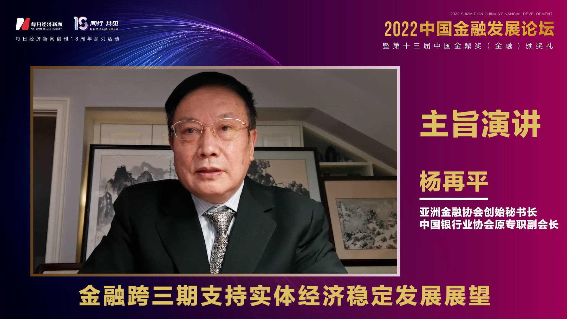 10月28日,由《每日经济新闻》主办的“2022中国金融发展论坛暨第13届金鼎奖(金融)颁奖礼”隆重举行。亚洲金融协会创始秘书长、中国银行业协会原专职副会长杨再平出席本次活动,并以“金融跨三期支持实体经济稳定发展展望”为题发表了主旨演讲。