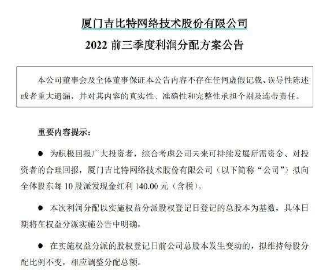虽然利润同比下滑,但依然阻挡不了分红的“霸气”。公司拟每10股派发现金红利140元(含税),合计拟派发红利10.06亿元,这也意味着吉比特将前三季度的净利润全部用来了分红。