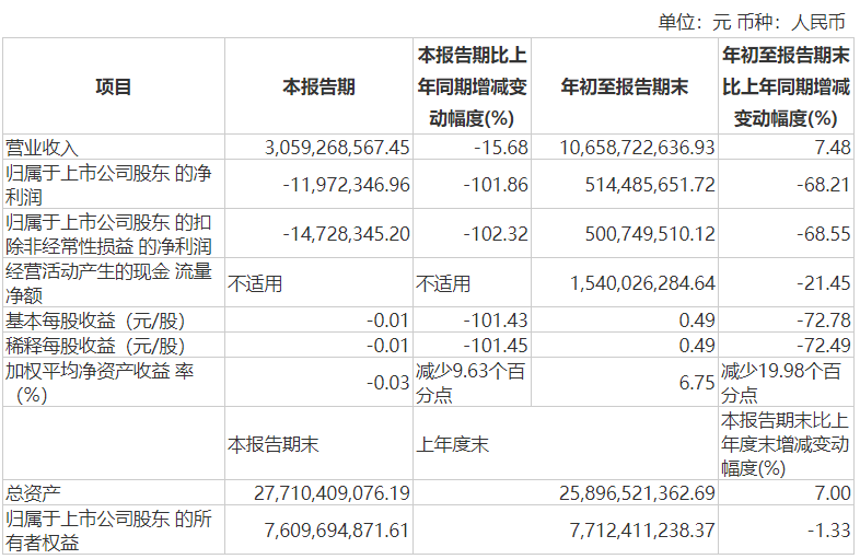 【大河财立方消息】10月28日,神马股份披露三季度报,今年前三季度实现营业收入106.59亿元,同比增长7.48%,净利润5.14亿元,同比减少68.21%。其中,第三季度营收30.59亿元,同比减少15.68%;净利润-1197.23万元,同比减少101.86%。