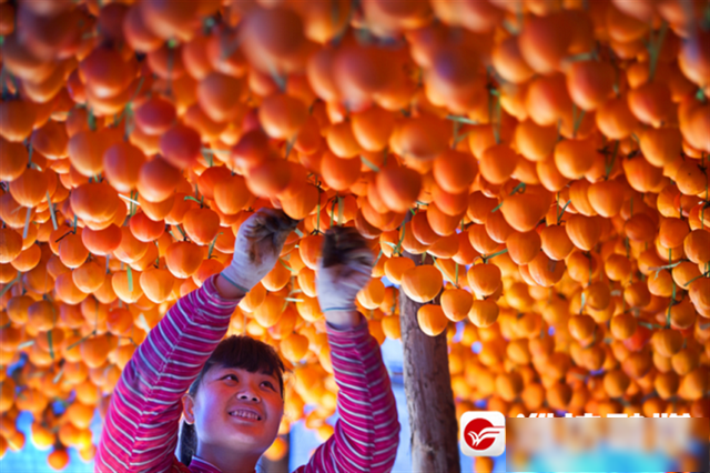 临朐县嵩山生态旅游发展服务中心天井村村民吊晒柿饼。