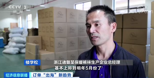 浙江诸暨某保暖裤袜生产企业总经理楼学松表示,现在的生产基本上排到了明年5月份。去年销售了300多万条,今年到现在就已经有360万条左右了。
