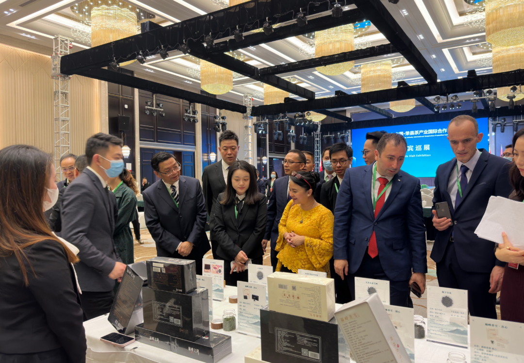 以茶会友、以茶兴业。10月28日,“一带一路”中国·荣县茶产业国际合作推介会举行。来自印度尼西亚、越南、阿尔及利亚等国驻华大使馆使节及茶叶协会、茶企通过线上、线下互动方式,与荣县茶产业协会、茶企进行深入交流并签订协议。