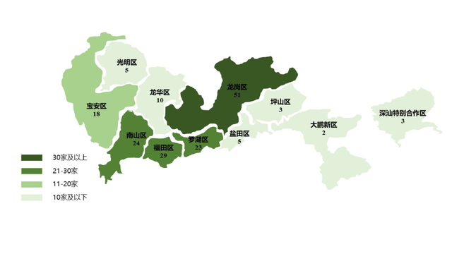 图 2021年度深圳市各区重点农业龙头企业数量 //数据来源:深圳市市场监督管理局。