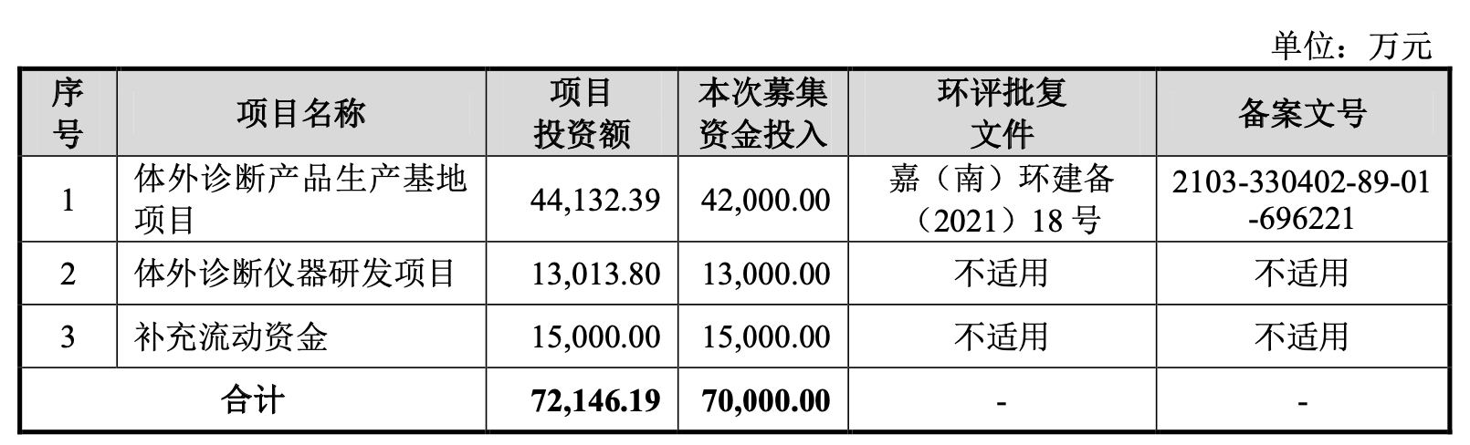 凯实生物此次IPO拟募资7亿元,其中4.2亿元用于体外诊断产品生产基地项目,1.3亿元用于体外诊断仪器研发项目,1.5亿元用于补充流动资金。