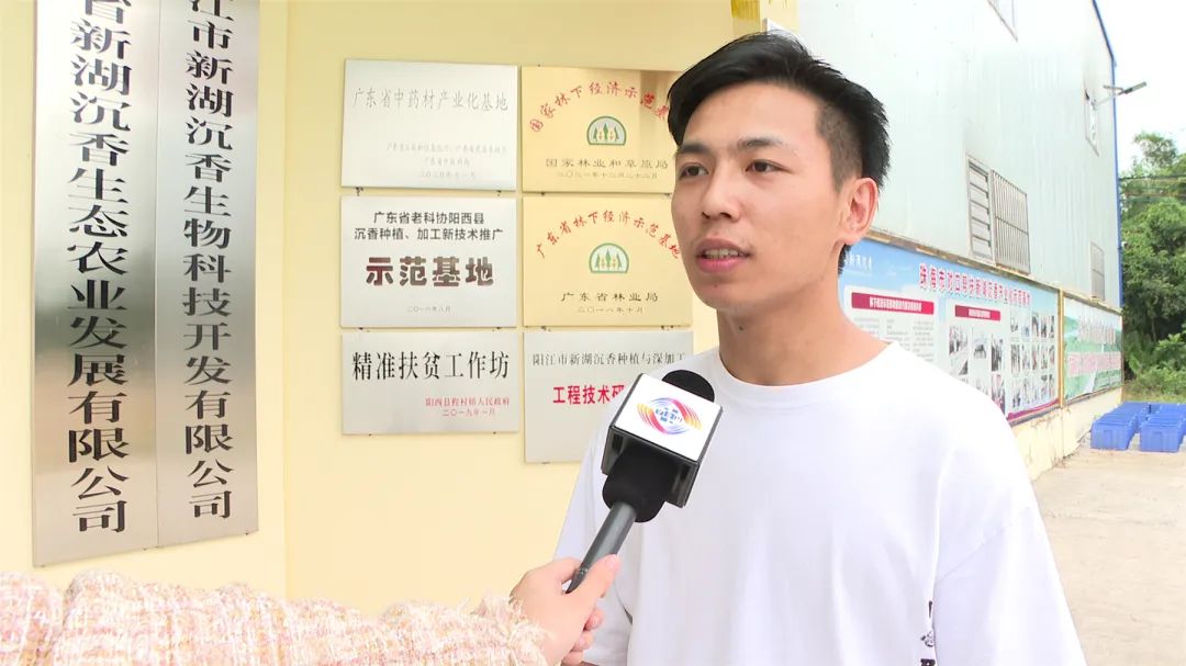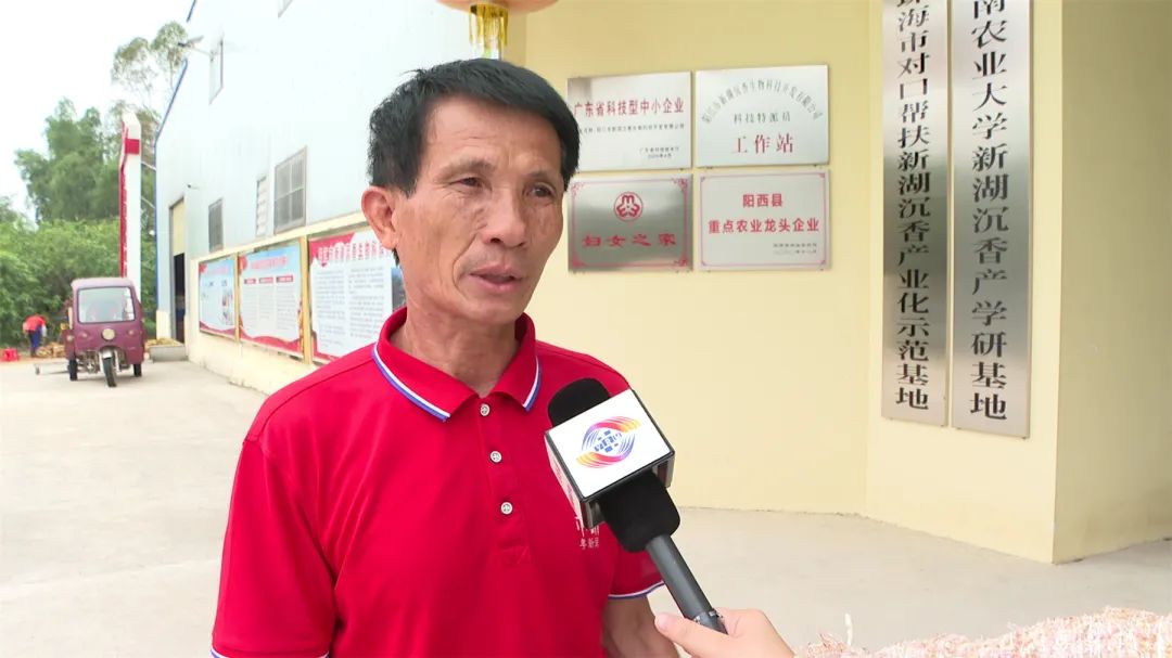 阳江市新湖沉香生物科技开发有限公司总经理 杨志雄:我们公司为农民提供了110多个劳动就业岗位,已有310户困难户入股,1100多余人参与股份合作分红。