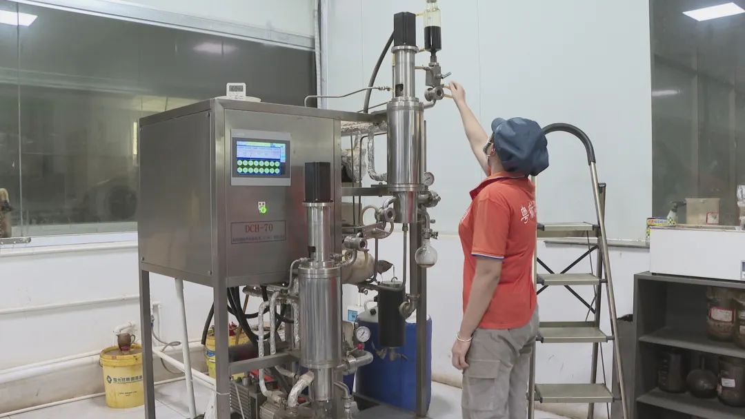 阳江市新湖沉香生物科技开发有限公司总经理 杨志雄:比如说我们的沉香中药材小方块,通过结香技术完全符合中国药典标准,沉香的醇浸出物达到10%以上,沉香四醇含量达到0.1%以上。对于沉香精油,沉香树年份越大,产量会越大,再根据我们公司超临界二氧化碳萃取技术,能有效的把沉香里面含油脂有效成分完全提炼出来,并保证里面的活性。