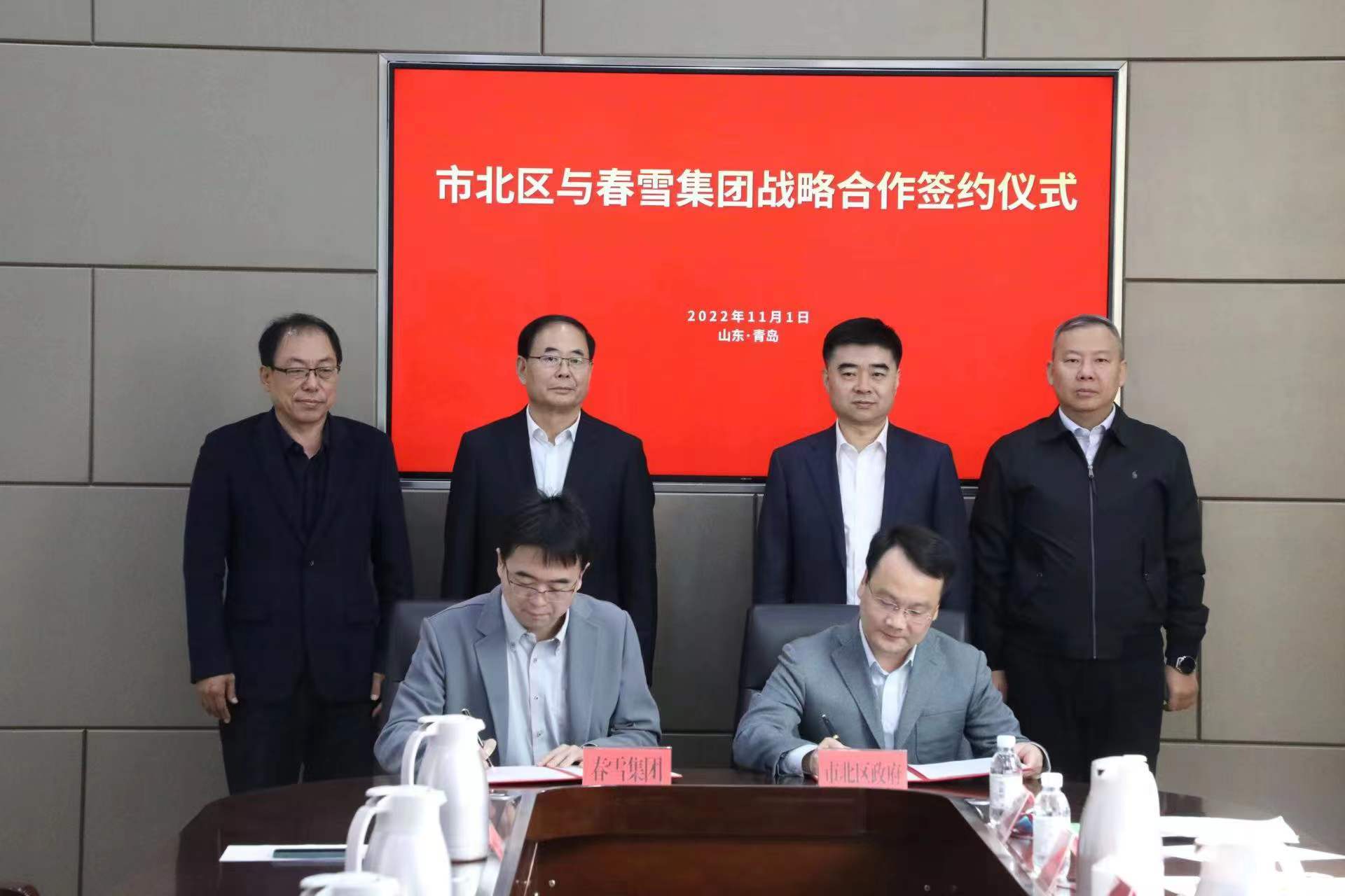 11月1日上午,市北区人民政府与春雪食品集团战略合作协议签约仪式在市北区机关大楼举行,青岛市商务局副局长于浩,春雪食品集团董事长郑维新、总裁王克祝、常务副总裁郑钧等集团领导,市北区委副书记、区政府区长刘新学,市北区委常委、区政府副区长钮本兵及区政府相关部门主要负责同志出席仪式。
