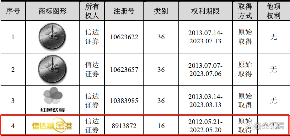 2.3 信达证券拥有一项带有“信达基金港”字样的商标,取得方式为原始取得