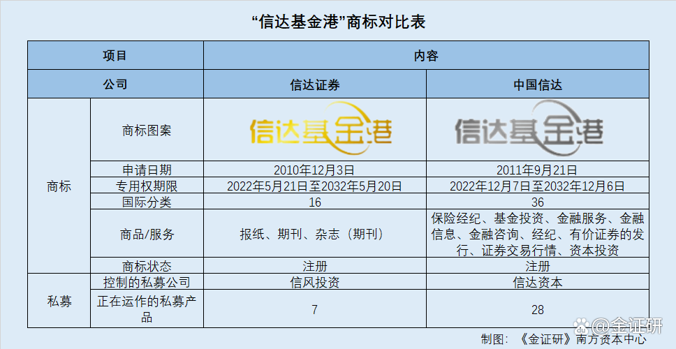 也就是说,信达证券的子公司信风投资,与中国信达控制的信达资本,均为私募投资基金,并且均已投入运营。在此情况下,信达证券取得的字样为“信达基金港”的商标,或对投资者造成混淆。